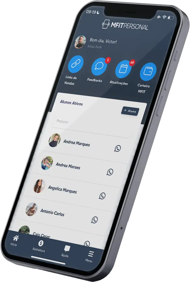 Estava precisando dar um up no meu atendimento de consultoria, sair do “papelzinho”... e o app da MFIT me proporcionou entregar treinos para meus clientes com muito mais rapidez e eficiência! Com a MFIT, já atendi mais de 170 alunos com excelência, elevando muito a minha renda mensal 💪🏼🤩